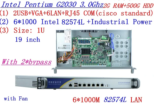 Cheap Broadband VPN Router 1U Firewall Server with 6*1000M Gigabit lan Intel G2030 3.0G 2G RAM 500G HDD 2*bypass Support