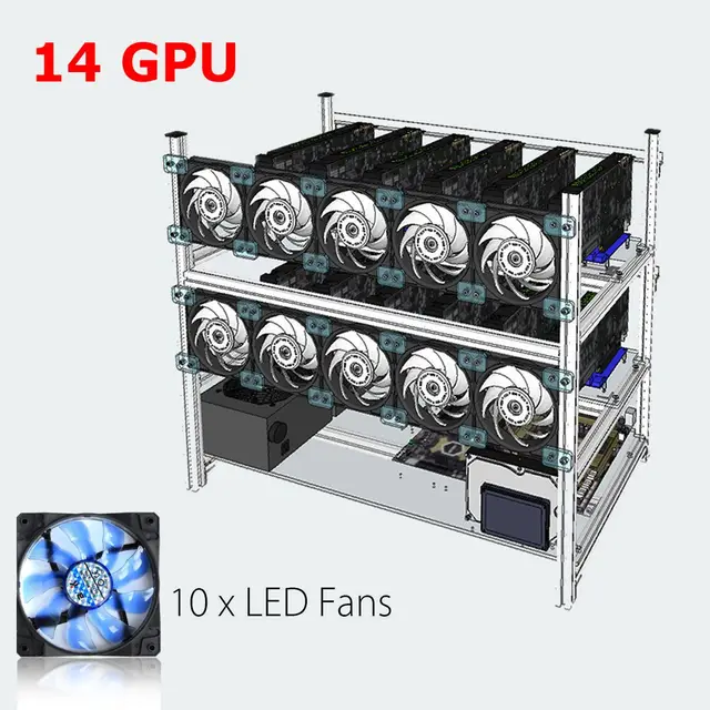 Cheap Stackable Open Air Mining Rig Frame Miner Case + 10 LED Fans For 14 GPU ETC BTH New Computer Mining Case Frame Server Chassis